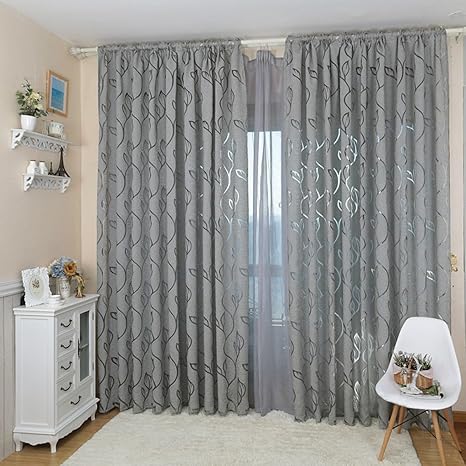 Amazon De Sbd Leaf Jacquard Tull Vorhang Rollo Fur Fenster