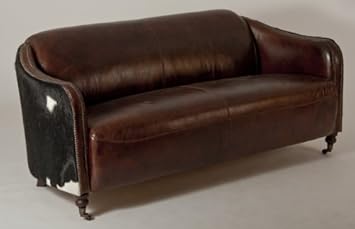 Vintage Club English Sessel Aus Braunem Patina Leder Und Kuhfell Um